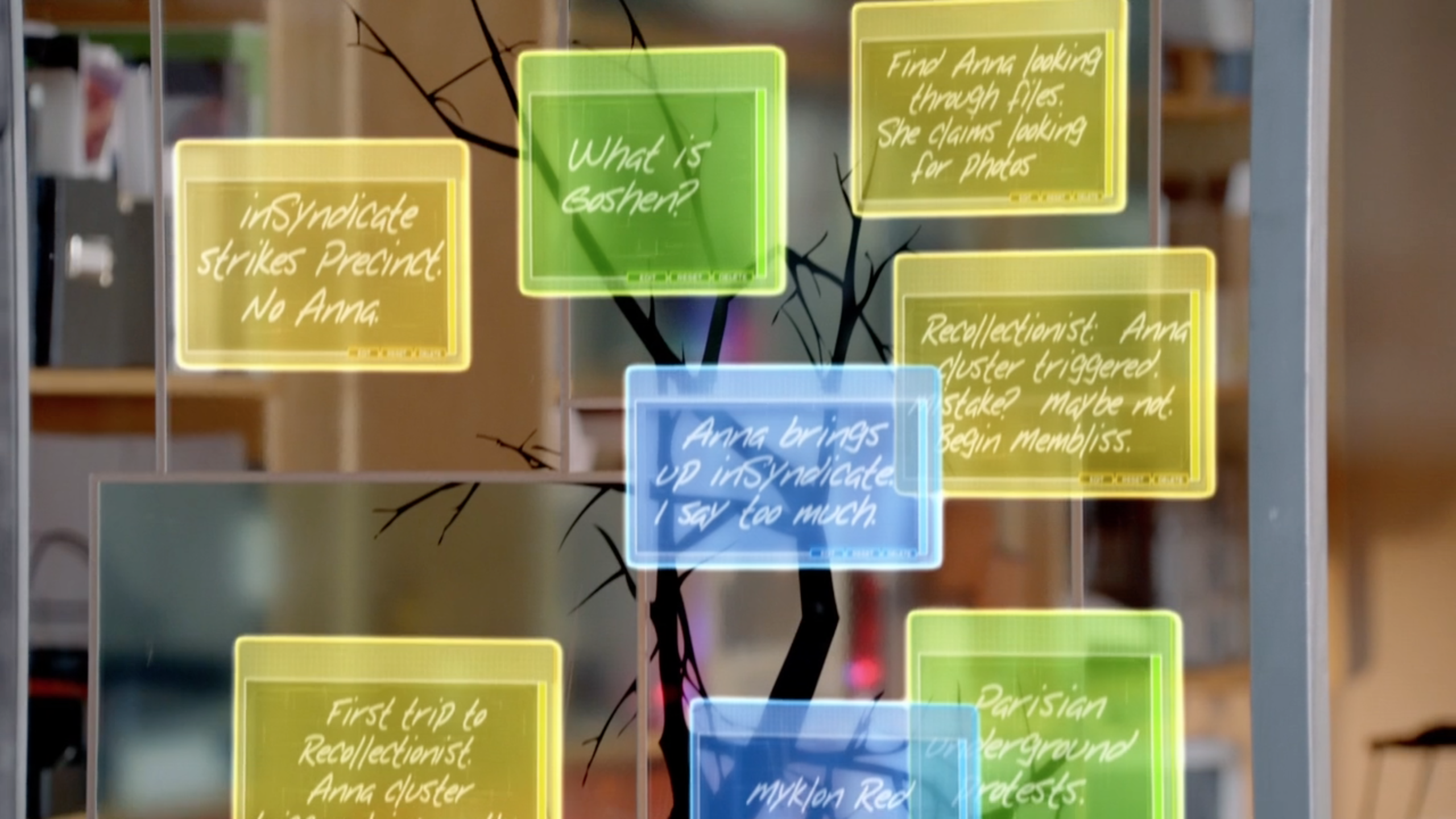 Quick thought on the Nesting Dolls bug – consider the chain of evidence. If Kennex got the gift from his girlfriend before the ambush that put him in a coma, that means the listening bug (doll) was sitting there for more than a year and a half while he was out of commission. Maybe he has false memories of the nesting dolls… maybe the Recollectionist is forcing bad info and is in the pocket of the Mob (NSyn), or IA, and the Doll only went into his house once he was set to return from the hospital.