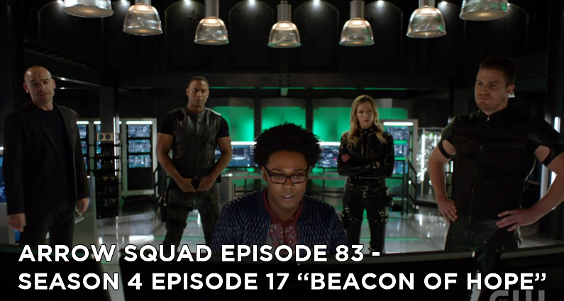 Greetings, Arrow Squad! In the hopes that you’ve neither abandoned us, nor the show, the hosting trio is back with another installment of the podcast. In this episode we cover Arrow Season 4 Episode 17 “Beacon of Hope” which originally aired on Wednesday March 30, 2016. This episode of Arrow featured special guest star Emily Kinney, a.k.a. Brie Larvan, a.k.a. Bug-Eyed Bandit! Brie Larvan first appeared on Season 1 Episode 18 of The Flash, when Felicity and Ray (in his Atom suit) showed up in Central City to get a little advice from S.T.A.R. Labs. If you were wondering about Brie’s comment: “You never forget the hacker who put you in prison,” then this episode of The Flash is the one you want to check out.