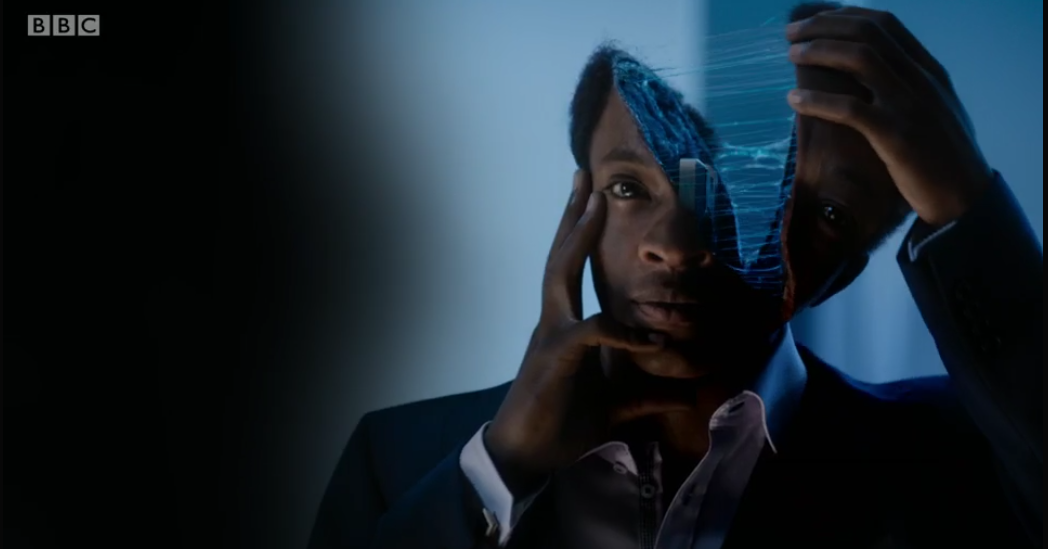 Lucy is on the case of the Harmony Shoals corporation and its’ New York chair Mr. Brock (Tomiwa Edun). She pays off a cleaner to use her uniform and ID and sneaks in later. Mr. Brock and Dr. Sim (Aleksandar Jovanovic) are having a heated discussion about the number of brains in the vault. The Doctor and Lucy overhear and sneak away when the alien controlled surgeons switch Mr. Brock’s brain with an alien one.