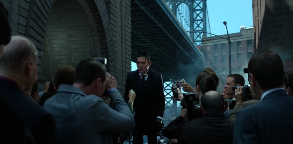 Penguin wants Fish to burn. He has been stirring up the press and the citizens of Gotham. The man has charisma and is using it to push people’s fear and exploit the failings of the GCPD. When the GCPD corner Fish, he and Butch lead the mob to the location. He uses the mob to distract the police and he goes after Fish, with Jim’s help. But when he confronts the witch in his life, he finds a mother figure instead. She calls the transformation of Oswald into Penguin the proudest moment of her life. Her gambit succeeds and He sends her off, telling her never to come back.