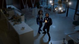 Lena is really enthusiastic about working with the team at the tower.ย She develops a device to capture phantoms hands free, keeping you safe from a scratch that will steal your soul. She also has a way to locate Kara in the fractured phantom zone. ย If only they could find something containing her genetic code.ย Time is running out and the chrysalis is about to become impenetrable.ย Alex will have to make a hard choice. She takes the device from Lena and changes its function. Now she can use it to pierce the chrysalis and free all the souls inside.ย