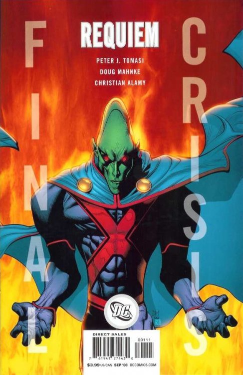 Members of the superhero community gather to commemorate the life of their fallen comrade J’onn J’onzz – the Martian Manhunter. The Martian Manhunter recently lost his life at the hands of Libra and his Secret Society. What some of the heroes are only now beginning to discover however, is that in his last moments, J’onn broadcast a telepathic message imprinting the whole of Martian history and culture into the brains of his closest allies. Each of them reflect upon the life of the man they knew. After the Earth-bound services are held, the heroes of Earth, along with the Green Lantern Corps bring J’onn’s remains to his homeworld Mars to be laid to rest.