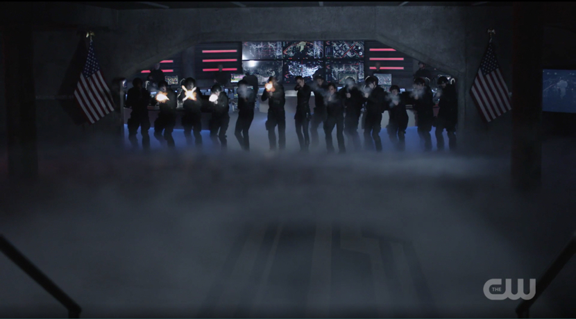 Kara is hanging out with Lena at a spin class when she overhears a distress call from a Colonel McAlister. Supergirl finds a cargo ship with a Navy Seal team on board, all of them killed except for one whom she saves from drowning. There is also a bomb on board so in the process of getting rid of it she notices a shimmer of light that pulls McAlister overboard. When Col Haley, Alex, and Brainy show up Col Haley quickly dismisses Supergirl as mucking up the situation and is basically quite rude. Supergirl promises DEO or not (by the way, they took the DEO out of the opening monologue) she’s not stopping being a hero. Nyahhhh! Kara then finds out that the Coast Guard has no record of the cargo ship and the Seal that Supergirl saved has “disappeared,” according to Brainy. Col Haley has tasked Alex with finding the shimmering alien so after she and Kara compare notes they decide to get official Private Investigator J’onn J’onzz on the case. His new business office is swanky! And he happens to have all of his files from the time he was at the DEO. Really? They just let him have them?! Anywho, Kara and J’onn go back through the files to figure out that the aliens are the Morai and that they have cloaking ability that apparently shows up to Supergirl’s x-ray vision as a shimmer. It also seems that McAlister, a Colonel Tam, and a certain Col Lauren Haley were in on experimenting on the Morai. Hmmmmmmmm. Supergirl, J’onn, and Alex show up at Tam’s house and confront him. The evil Musketeers weapon-ized the aliens to be assassins and as soon as President Baker put the hammer down on alien interactions the Morai were to be taken out. They didn’t appreciate that so they took out McAlister, and they’re here now to take out Tam. J’onn tries to save Tam but he’s dead. Alex stuns one of them and when they suggest taking it back to the DEO it decides suicide is a better option. Haley admits to Alex her involvement but says it’s been years since she was a part of it and yes while it’s wrong to subject young aliens to traumatic tactics to get their loyalty as a soldier Alex should understand that unpopular choices have to be made to save the country. Alex gets the DEO ready for a Morai assault since they’re going to be coming for Haley. Sure enough they come and wreak Morai havoc; but, Supergirl comes at the last second to save Haley and capture a live Morai.