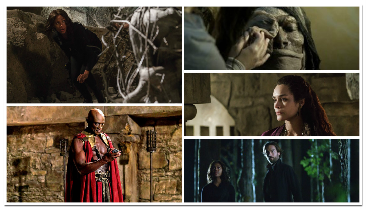 It appears that The Hidden One (Etu Ilu) requires the power from the red gemstone (binding stone), or “eye,” which was encased in the Shard of Anubis, and he is extracting that power out of Jenny as if it is his lifeblood. We are given a clue that he needs this power to create a “righteous fire” to rid the world of all the mortals who have destroyed it (in his opinion), but would not fire destroy the world even more? In Greek and Roman mythology, the gods would often disguise themselves and walk on the earth, taking human lovers, and often manipulating the humans. Pandora and Etu Ilu seem to be more concerned with ridding themselves of the humans and re-creating whatever magical world they believe they have left behind, many millenia ago. They both seem to possess a narcissism that would be in line with the mythological stories, and present a clear contrast to our Team Witnesses, Abbie Mills and Ichabod Crane, and their selfless sacrifices against the many evils they have been fighting. Indeed, we watch Abbie make what appears to be the ultimate sacrifice at the end of the episode.